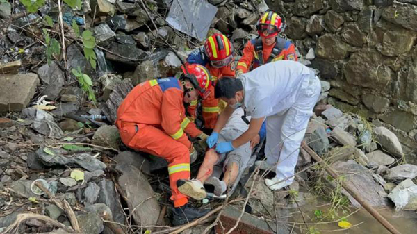 石景山消防緊急救援,墜山溝釣魚男子成功脫險
